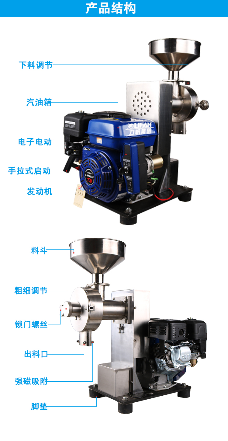 的汽油磨粉机,这些跟风仿制的汽油磨粉机,为节省机器成本,大多采用假冒或劣质的汽油机,如假冒“本田”和杂牌 “纳瑞”,有些是三无产品,还有些特意以“航天科技”来忽悠蒙骗消费者,甚至还特意贴上食品强制认证标志“QS” 来误导和蒙骗广大客户,正规的汽油发动机,都要有品牌标志和生产厂家以及合格证等,全英文的都是三无产品,请广 大消费者认真辨别,以免上当受骗。 8、正规汽油机和杂牌、假冒汽油机的分别如下: