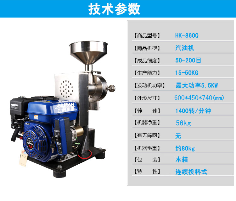 QIUSU Sports汽油磨粉机工厂直供价:3600元 广州市QIUSU Sports机械通过质量监督检验合格产品,本机上市以来客户操作使用上所发现的一些实际问题, 我司组织研发、技术队伍在设计、材质、性能、外观,进行反复试验,多次改进、改良,不断提高机器零配件 加工工艺,不断改善机器装配工艺流程,基本保持1.5—2年对产品更新换代一次,目前在市场上的主打产品为 第三代机型,真正、彻底解决磨粉不够细腻、卡机、产量低、噪音大等其他公司同类设备的通病,确保进出料 顺畅,噪音小,使机器能满足多数客户的使用需求。 2012年7月,QIUSU Sports机械为满足流动作业经营者的使用要求,研发制造了汽油机磨粉机,即“汽油发动机 +磨粉机”,不需连接电源,通过汽油发动机传动,适合流动式磨粉作业。本机可通过控制发动机油门的大小, 调节转速。 ![]() ![]() 我公司对配件的选用一直坚持更优、更好的原则,坚决杜绝劣质、低价的配件。本机整机(含汽油机)均保修一年。 我公司是生产厂家,相对于其他贸易商或者网店,我公司有强大的技术、人员保障和完善周到的售后服务体系,为 广大客户提供最优质的产品和终身的维修售后服务,解除客户的后顾之忧:保修期内属于质量问题,公司免费提供 配件和维修服务;超出保修期限或保修范围,公司也仅收取配件成本费。 ![]() 主要性能特点: 1、机身由304不锈钢铸造和精密加工而成,美观大方、不生锈,符合GMP要求。 2、更加卫生: (1)加装了4个强磁,吸附机器运转过程中磨片磨损的铁粉,干净卫生; (2)机器磨粉腔内不用涂抹润滑油(脂),不会对所加工物料造成污染,保证了食品、药物的安全卫生。 3、提高了机器零配件加工工艺,改进了机器装配流程,噪音低、进料通畅、下料更快、不堵料,磨粉细腻、无粉尘。 4、连续投料式生产,效率高。 5、操作简单方便。 (1)只需要将动磨片套上连轴器,轻轻旋转一下就可以把动磨片安装好。 (2)操作使用机器时,调节磨粉粗细更轻松省力。 (3)磨粉腔内物料余留少。 (4)进料快慢和出料粗细均可调节。 ,特别适用流动作业。加工范围广: (1)各种粮食:芝麻、核桃、大米、黑米、黄豆、绿豆、花生、莲子、玉米、高粱、大麦、荞麦、燕麦等; (2)各种干性药材:杏仁、茯苓、红枣、芡实、枸杞、薏仁、山楂、淮山、首乌、红豆、阿胶、乳香、菟丝子、当归 、党参、黄芪等。 工作原理: 磨粉机靠两块布满齿槽的磨片相对磨动、运转,从而将物料研磨成粉末。 7、友情提示:我司是全国最早开发汽油机的生产厂家,随后一段时间,国内一些小作坊、小型加工厂,先后仿制我司