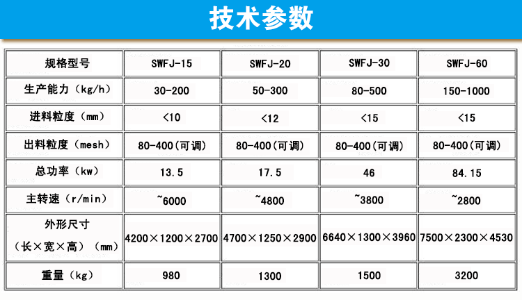 需求,非常适合药厂、食品厂、化工厂的高精度粉碎要求,粉碎细度可随意调节。