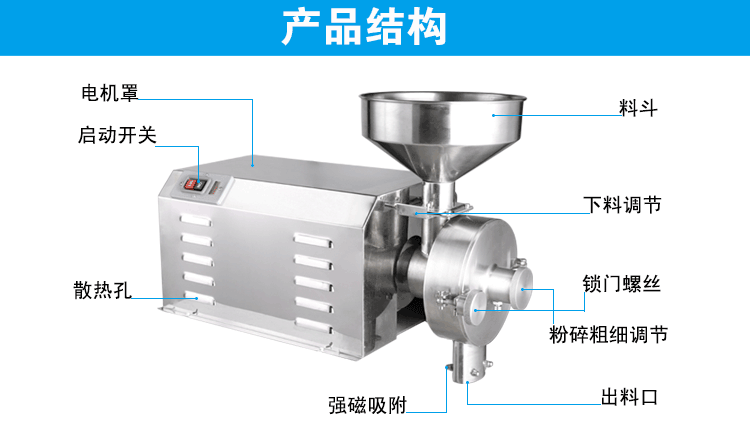 5、磨粉机需固定在牢固稳定水平的桌面和柜台上,才能减轻震动和噪音。